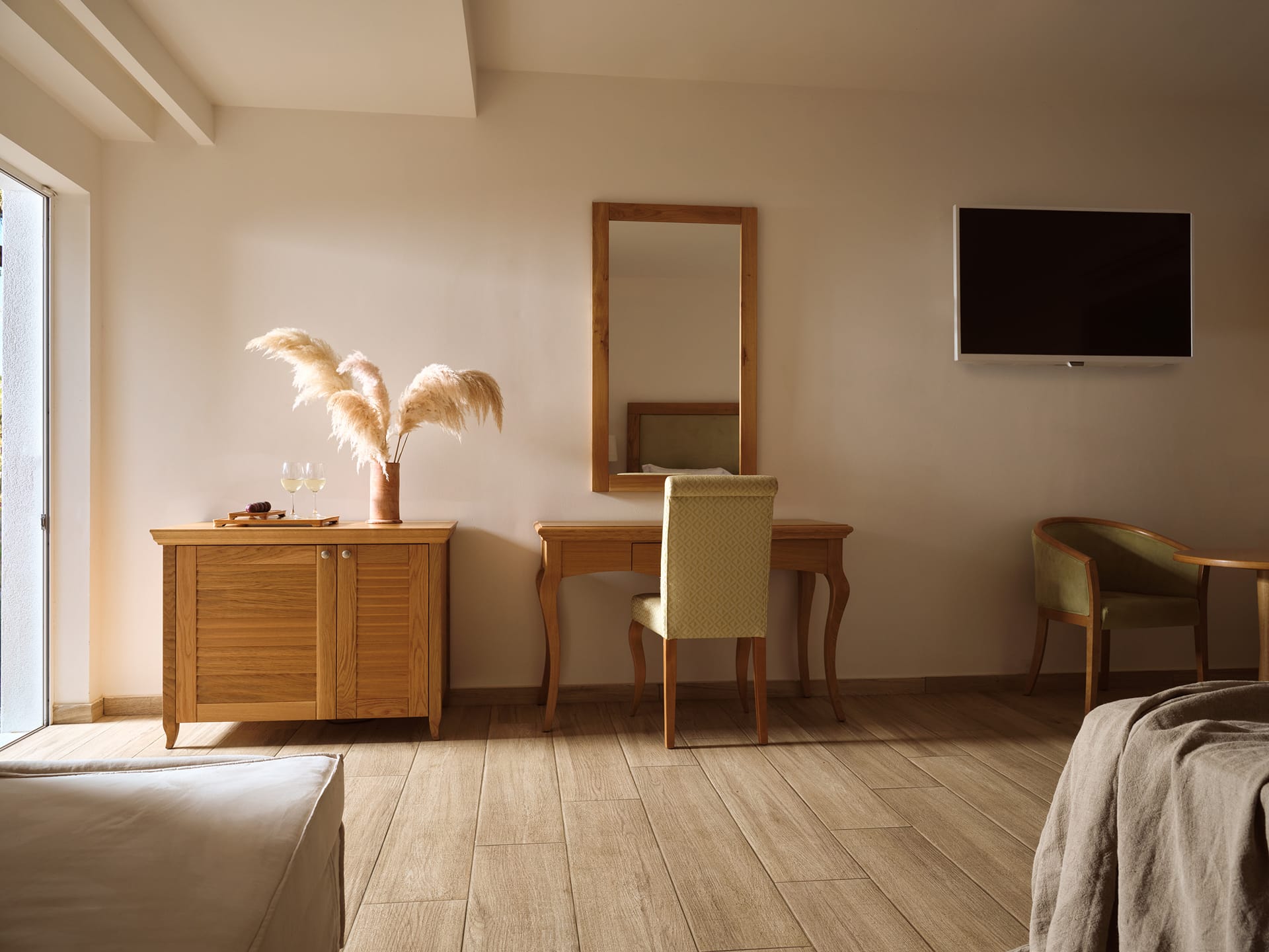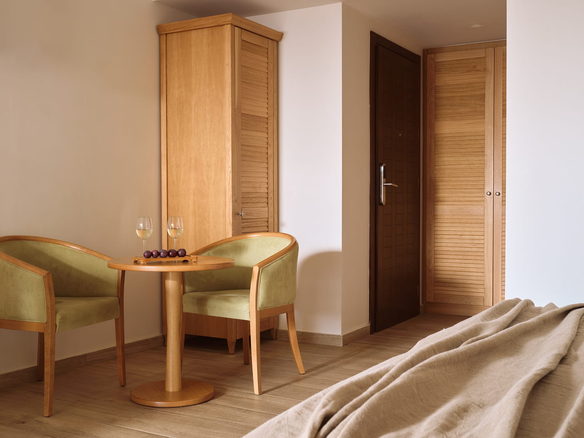 Our brand-new Premium Bungalow Garden View, 21 - 25 sq. m., has one double bed or two twin beds and a sofa bed in open-plan style, and its terrace offers direct access to the hotel’s palm trees garden. It features an ensuite bathroom with a shower, complimentary bathroom toiletries, slippers and a hairdryer. It is equipped with a mini-fridge with refreshments, coffee/tea making facilities, individually controlled air conditioning, free Wi-Fi internet access, telephone, safe with extra charge, satellite flat-screen 32” TV and pool/beach towels.